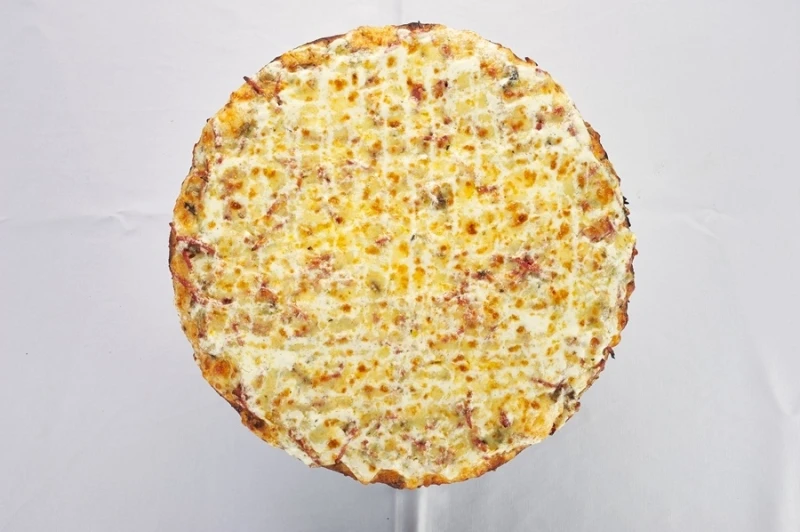 Классическая пицца, в которую добавлены сервелат, моцарелла, майонез